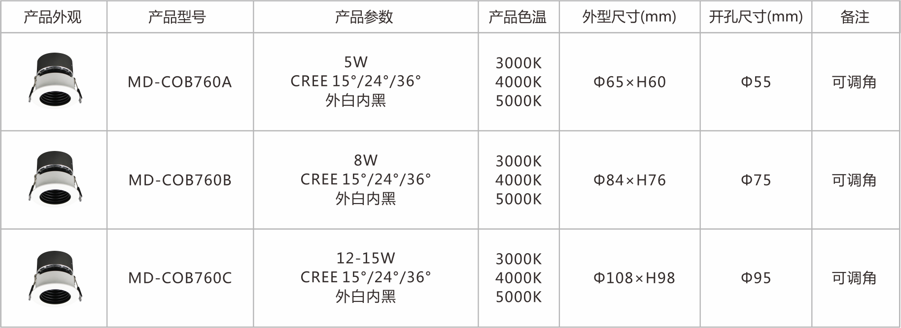 COB760防眩天花射灯